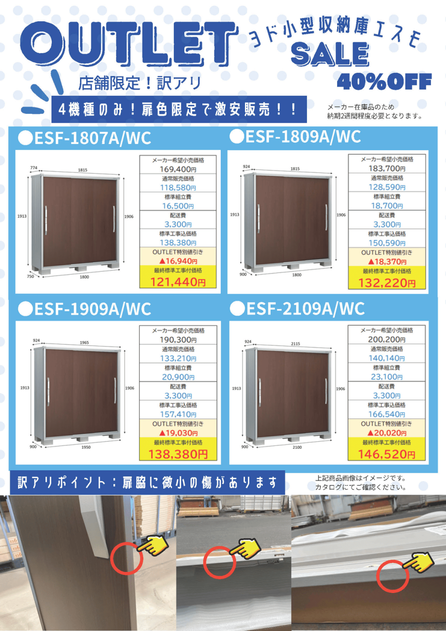 現在ヨドの収納庫のサイズ限定で、特別セールを開催しております。 在庫がなくなり次第、販売終了となります。このお得な機会をお見逃しなく!!